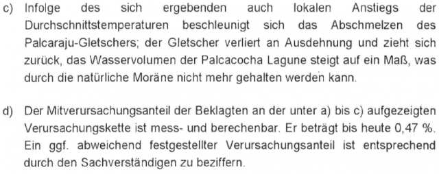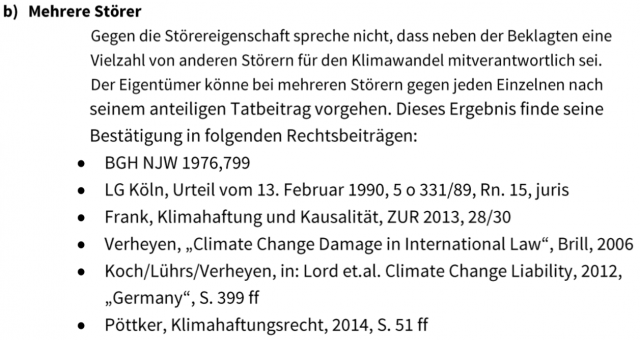 Leider ist eine solche Betrachtung juristisch nicht korrekt. Im Schriftsatz von Germanwatch wird argumentiert, dass es nicht um die Feinheit der direkten Beeinflussung geht, sondern um die Beteiligung daran, sei sie auch noch so klein.