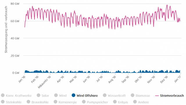 Und nun der aktuelle Anteil offshore im Verhältnis zum aktuellen Verbrauch im Jahr 2016: