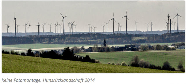 Reist man durch eine Landschaft, dann sucht das Auge immer automatisch nach irgendwelchen Fixpunkten. Früher waren das, wenn man über der Hunsrück reiste, schöne Landschaftsformen, Berggipfel, ein Aussichtsturm, oder einfach nur die liebliche Landschaft selber. Heute springt das Auge des Reisenden im Hunsrück nur noch von einem Windrad zum nächsten.