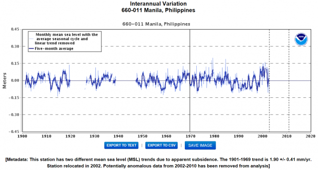 Und damit ist endlich auch offiziell durch die NOAA bestätigt, dass der Meeres-Pegel bei den Philippinen seit dem Jahr 1900 nicht zugenommen hat.