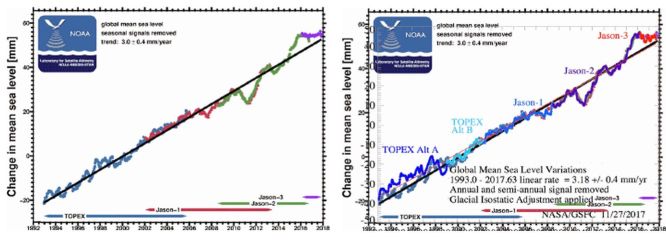 Es tut mir leid, berichten zu müssen, dass es IMMER NOCH schlimmer als wir dachten ist [WTWT = Worse Than We Thought]. Die zur Berechnung des auf Satelliten basierenden Anstiegs des Meeresspiegels verwendeten Daten sind nicht wirklich ein Anstieg der HÖHE der Meeresoberfläche. Das heißt, sie repräsentieren nicht (und haben das auch nie) einen tatsächlichen Anstieg der Meeresoberfläche über das Geoid (oder, einfacher ausgedrückt, eine zunehmende Entfernung vom Erdmittelpunkt). Der wirkliche Meeresspiegel-Anstieg wird reflektiert in einem Anstieg der mittleren globalen Höhe der Meeresoberfläche. Aber der globale mittlere SLR, wie er von der Sea Level Group in Colorado, der NOAA und Anderen berechnet worden ist, ist ein Konzept – und nicht eine Messung. Ich habe einmal den Terminus „imaginary number“ verwendet, um diesen Typus einer nicht physikalischen Metrik zu beschreiben – eine Zahl, von der es heißt, dass sie irgendetwas in der realen Welt repräsentiert, aber in Wirklichkeit etwas ganz anderes ist. Ausführlich gehe ich darauf in meinem Beitrag ein „What Are They Really Counting”. SLR-Satellitendaten enthalten Dinge wie die „GIA-Adjustierung“ – womit die Größe des SLR gemeint ist, zu welchem es gekommen wäre, falls das Volumen des Ozeanbeckens nicht zugenommen hätte. Im Falle dieser neuen Studie heißt das, wie viel die Meeresoberfläche höher gelegen hätte, falls sie nicht durch den Ausbruch des Pinatubo unterdrückt worden wäre oder ohne zahlreiche weitere künstliche Korrekturen.