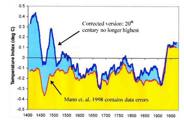 …. Es waren neun Tage nach Erhalt der Weaver-Klage vergangen, als ich eine öffentliche Präsentation in Winnipeg hielt, einschließlich einer Erklärung des „Hockeyschlägers“. Danach wurde ich … interviewt, und sie veröffentlichten meinen oberflächlichen Kommentar über die Gegenüberstellung von Manns Standpunkte. Keine 24 Stunden später, erhielt ich die dritte Klage.