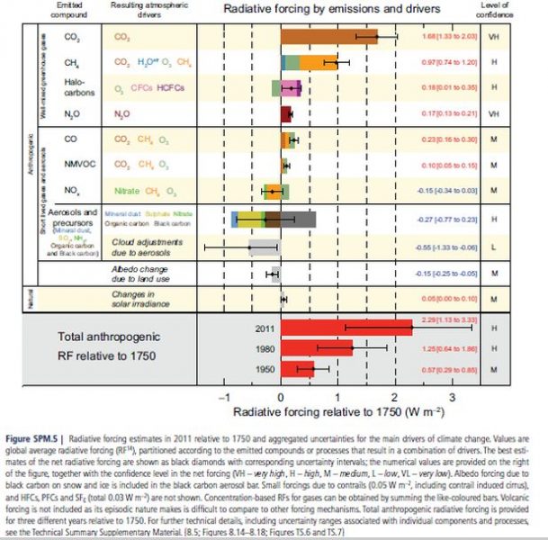 In allen Fällen nimmt das IPCC der Einfachheit halber an, dass alle Treiber des Klimawandels anthropogen verursacht sind. In der wissenschaftlichen Literatur werden noch viele andere Treiber behandelt, die aber einfach ignoriert werden, hier und in den Modellen.