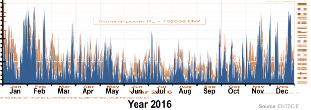 Anhand der Daten von Agora hat der Autor in diesem Artikel die gesamte Stromerzeugung Deutschlands (onshore und offshore) im Jahr 2016 statistisch analysiert mit dem folgenden Ergebnis: