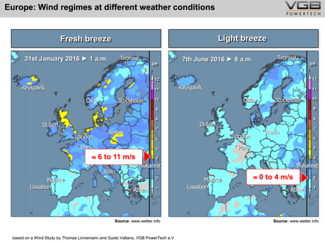 Grundsätzlich führt der kombinierte Einsatz von Windenergie und Photovoltaik zu einer deutlich geringeren Anzahl von Fällen mit geringer Stromproduktion. Diese Ertragsrisiken werden nochmals stark reduziert durch einen europäischen Stromverbund.