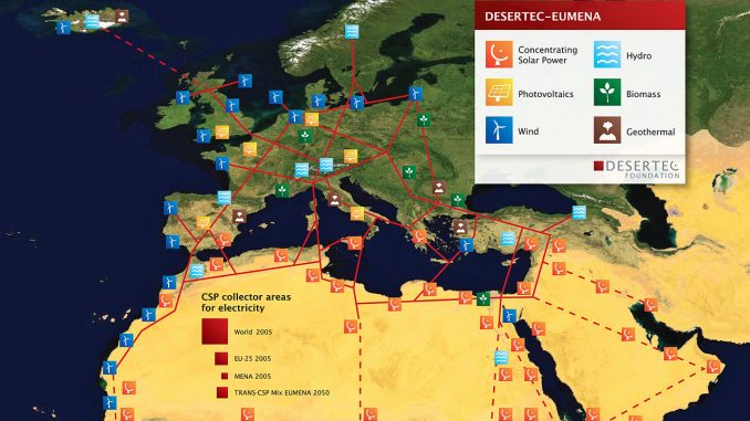 DESERTEC war von vornherein ein totgeborenes Kind. Bei ca. 5000 km Leitungslänge kommt hinten bei uns nur wenig an. Die HGÜ-Leitungen müßten erst noch gebaut werden. Unterirdisch? Eine normale Höchstspannungs-Drehstrom-Übertragung ist sowieso nicht machbar. Es ist unfaßbar: Die Initiatoren waren nicht nur technisch unwissende Banker, sondern leider auch wissende Ingenieure.