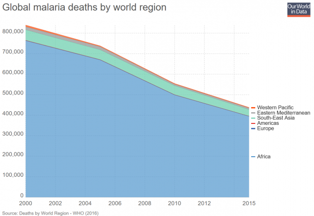 Bild 3 Weltweite Abnahme der Malariafälle seit dem Jahr 2.000. Quelle: OUR WORLD IN DATA December 2017 : Malaria by Max Roser and Hannah Ritchie