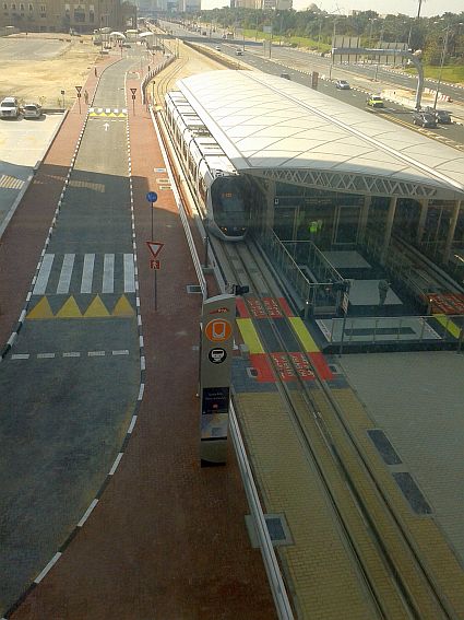 Demmig, Straßenbahn in Dubai mit Stromband in der Mitte der Schiene