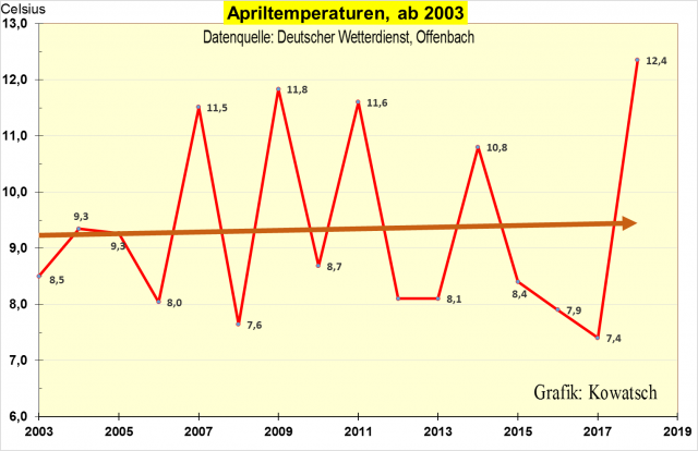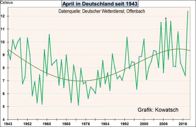 Auch der DWD hat nun auf seiner homepage eine Grafik der Apriltemperaturen eingestellt, und zwar seit 1881, siehe https://www.dwd.de/DE/Home/home_node.html