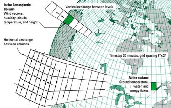 Nun wissen wir jetzt, dass die Modelle an jedweden ,Sicherheits‘-Anforderungen scheitern, selbst im grundlegendsten Niveau. Allerdings ist die Sicherheit ungeeignet bei allem was sie sagten und taten und – traurigerweise – immer noch tun. Die Computermodelle sind mathematische Konstrukte, wobei die Erdatmosphäre durch willkürlich gewählte Würfel repräsentiert wird (Abbildung 1):