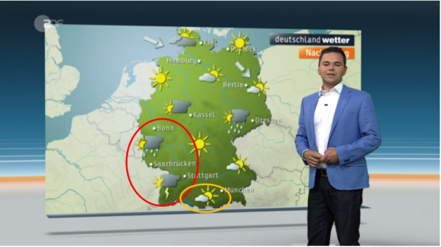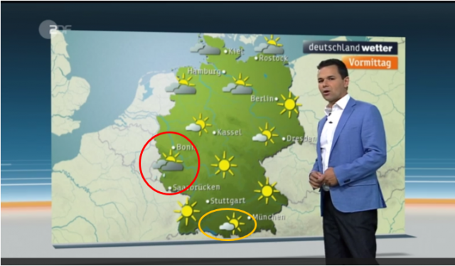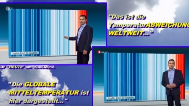 Über die Wetterfrösche des ZDF hat der Autor in diversen Artikeln dargelegt, was von deren Arbeiten und Verlautbarungen zu halten ist, hier und hier. In seinem jüngsten Artikel „Denk ich an Deutschland in der Nacht, dann bin ich um den Schlaf gebracht“ zeigte der Autor, wie die Darbietungen des Youngsters bei den ZDF-Wetterfröschen, Herrn Terli, einzuordnen sind. Herr Terli ist der, der so gerne, wohl mangels besserer Kenntnisse, bunte Bildchen verwendet und damit Meteorologie oder gar Wissenschaft mit einem Trödelmarkt verwechselt (Abb.2).