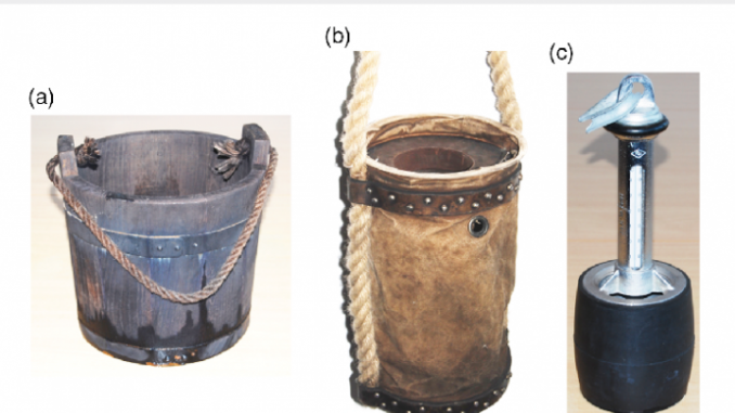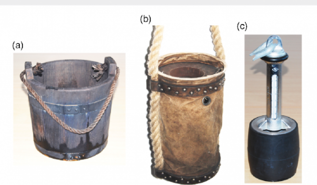Abbildung 2: (a) Holzeimer, (b) Eimer aus Segeltuch, (c) German scoop (moderne Version). Mehr