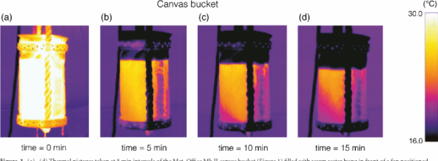 Hier folgt eine Infrarot-Sequenz, die zeigt, wie sich Wasser in einem Stoffeimer abkühlt: