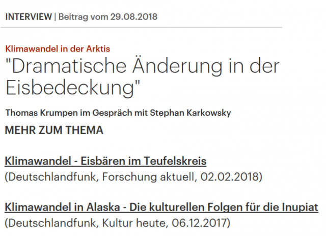 Die Quelle dazu ist leicht zu finden. Das AWI forscht fleißig zum Klimawandel und publiziert – inzwischen angelehnt an die alarmistische Art des PIK – entsprechend. Über 900 Mitarbeiter wollen schließlich gut bezahlt werden und das gelingt nur mit ausreichenden Fördermitteln, die im wesentlichen Umfang von der Politik „generiert“ werden. Nur noch selten werden (wohl versehentlich) nicht alarmistische Studieninformationen publiziert [8].