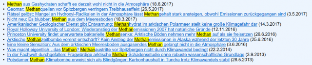 Bereits im August 2017 erschien in Nature eine Arbeit von Petrenko et al., in der den Methanhorrorszeanarien eine klare Absage erteilt wurde: Minimal geological methane emissions during the Younger Dryas–Preboreal abrupt warming event