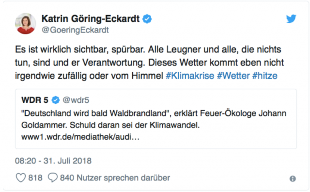 SZ: Ein Sommer, in dem sich die Klauen des globalen Klimawandels auch in Deutschland schmerzhaft bemerkbar machen