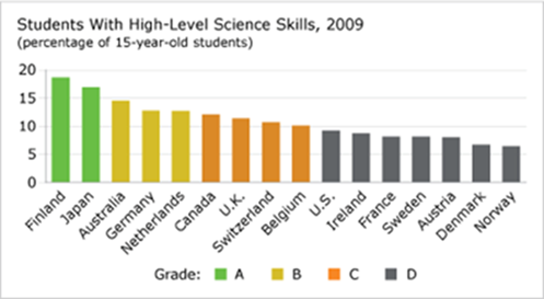 Das Problem fehlender Bildung bzgl. Zahlen erstreckt sich auf die Öffentlichkeit insgesamt. Abbildung 1 zeigt die Anzahl der 15-jährigen Schüler mit wissenschaftlichem Hintergrundwissen:
