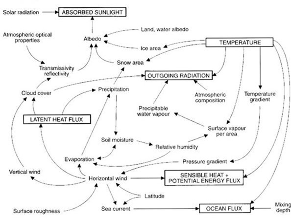 In einigen wenigen Disziplinen wie etwa dem Studium von System-Analysen versteht man das fundamentale Problem im Zentrum der AGW-Problematik. Abbildung 2 ist ein einfaches Systemdiagramm der Atmosphäre, erstellt von Kellogg und Schneider im Jahre 1974. Die so genannten Klimawissenschaftler verstehen nicht. Die Arroganteren unter ihnen glauben, weil sie Grade in Mathematik oder Physik haben, dass sie darüber stehen und es verstehen, während wir Anderen dumm sind, weil wir versuchen, selbst die größeren Teile des Systems richtig zu verstehen. Es ist die unvermeidliche Ausweitung von logischem Positivismus.