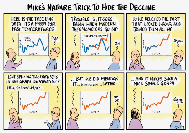 Sie sind zusammen mit der Manipulation des Hockeystick-Anstiegs dargestellt, als wären es die reinen Wahrheiten: