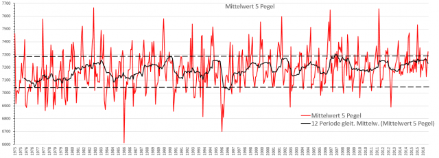 Bild 9 Studie Wahl et al. 2013. Pegelverläufe repräsentativer Stationen. Die steil ansteigenden Pegeltrends vom Bild 7 sind verschwunden