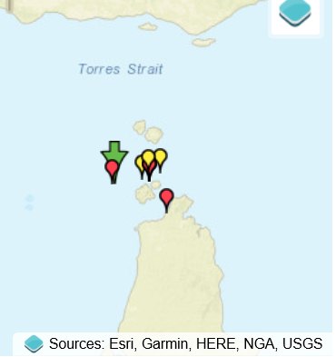 Bild 16 Pegelmesstelle BOOBY ISLAND in der Torresstraße zwischen Australien und Neuguinea (grüner Pfeil)