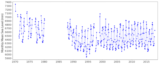 Anhand einer kleinen Analyse ließ sich leicht zeigen, mit welch perfidem „Kunstgriff“ der Pegelanstieg von 6 mm/pa erzeugt wurde: Anstelle den vorliegenden, gesamten Pegelverlauf seit 1970 zu verwenden, der zu einem deutlich sinkenden Pegel führt, wurde erst ab dem Jahr 1993 gerechnet. Da der Pegelverlauf einen Zyklus hat, konnte durch diese ausschließliche Berücksichtigung eines ansteigenden Zeitsegmentes der gewünschte, hohe Anstieg „herausgeschnitten“ werden. Mit der Wirklichkeit hat er aber nichts zu tun.