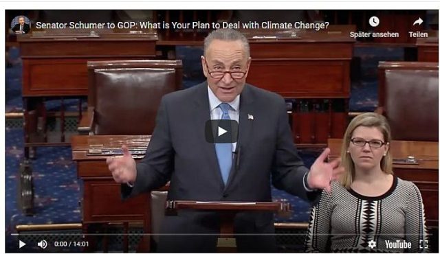 Trotzdem sucht der Minderheitsführer im Senat, Chuck Schumer, nach Wegen, die Demokraten vor der Abstimmung über den Green New Deal zu schützen. Schumer plant eine „Offensive“, um den Klimawandel im Jahr 2020 zu einem Top-Thema zu machen und damit Stimmung gegen die Republikaner zu machen.