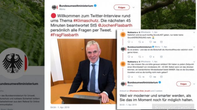 Ich muss zugeben, ich hielt das zunächst für einen missglückten Aprilscherz. »Frag den Flasbarth« hieß es am Montag, als das Bundesumweltministerium zum Twitter-Interview einlud. Thema Klimaschutz. Jochen Flasbarth, einer der Chefideologen der Energiewende und des Kohleausstiegsunsinns, wollte etwaige Zweifel an diese Plänen ausräumen und Stimmung dafür machen, wie gut er und seine Umweltleute gegen den Weltuntergang ankämpfen.