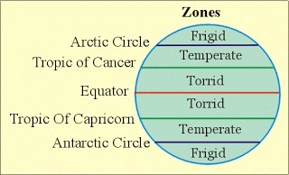 Mit diesem Wissen definierte die Griechen drei Klimazonen, kalt, gemäßigt, warm; siehe Abbildung 2: