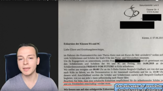 Deinem Kommentar nach zu urteilen, hast du dir das Video nicht, oder nicht ganz, angesehen. Du solltest du dir vielleicht erst mal das Video von Charles Krüger anhören. Er kritisiert darin nämlich nicht nur den Zwang, an FFF teilzunehmen.