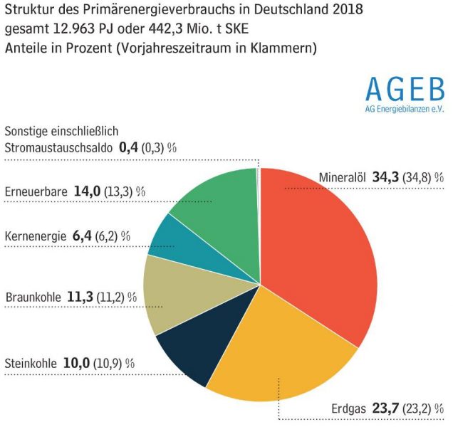Bild 2. Aufschlüsselung der verschiedenen Primärenergielieferanten in Deutschland (Quelle: AGEB)