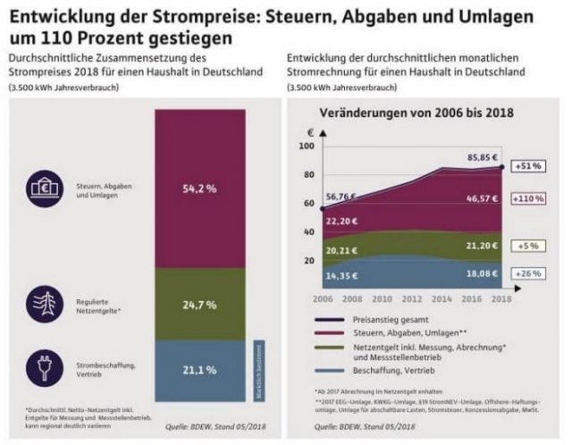 Bild 8. Der Staat hat allein im Lauf der letzten 12 Jahre seine Einnahmen aus der Stromerzeugung um 110 % erhöht (Grafik: BDEW)