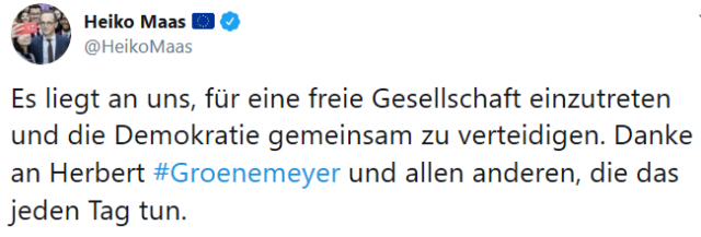 Wer applaudierte dazu: Unser Außenminister, der sich so etwas täglich wünscht (das hat er mit der Antifa ja bald schon erreicht):