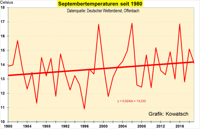 Hier kann man übrigens vom Deutschen Wetterdienst die Temperaturanomalien für den Zeitraum von 1881 bis 2019 sehen. (Für September einfach das Feld „September“ anklicken):