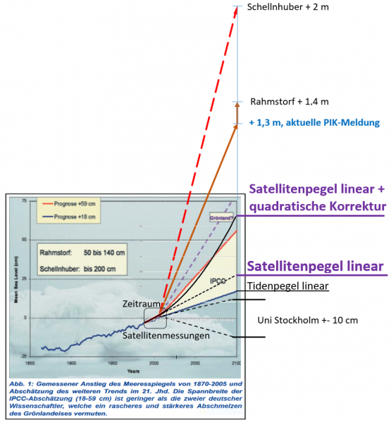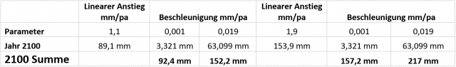 Eigenes Nachrechnen ergibt daraus die folgenden Pegeldaten zum Jahr 2100: