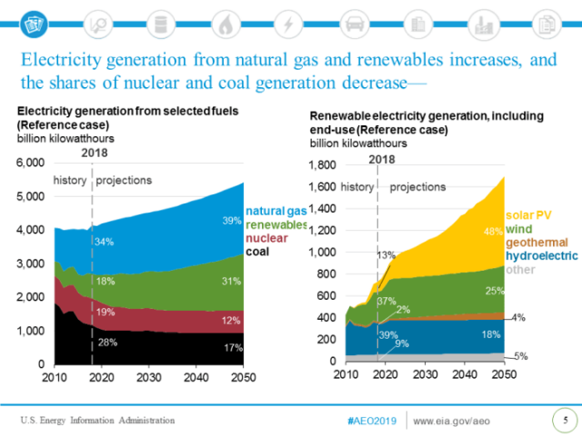 Die Internationale Energie-Prognose 2019 der EIA projiziert, dass Erneuerbare ab 2050 die primäre Energiequelle sein werden…
