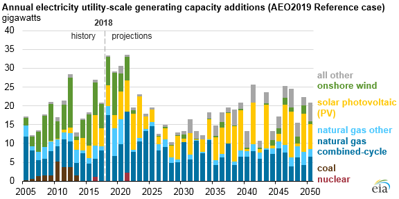 Abbildung 5: Zusätzliche Erzeugungs-Kapazität von 2018 bis 2050 (US EIA)