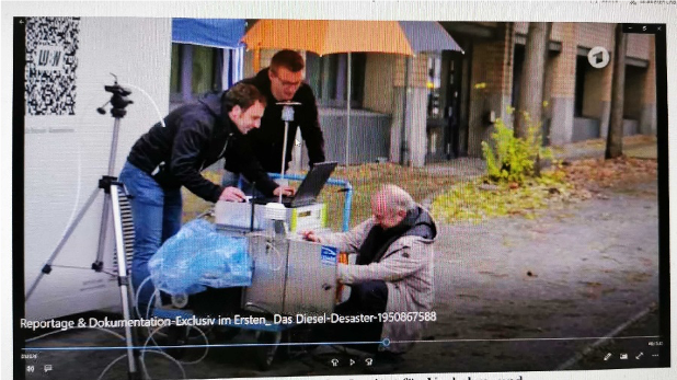 Bild oben: Prof. Matthias Klingner vor der in der Sendung „Das Diesel-Desaster“ verwendeten Messapparatur (Screenshot: Autor)