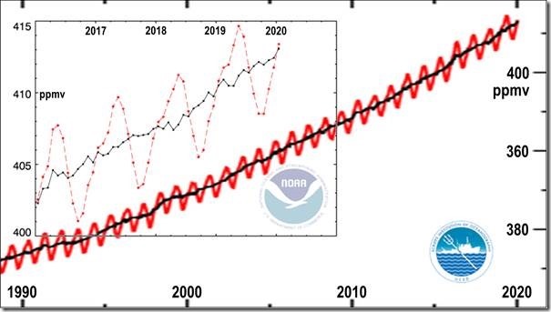 Die veröffentlichte CO2 -Konzentration in Mauna Loa zeigt jedoch einen anhaltenden und unverminderten Anstieg in den letzten vier oder fünf Jahren:
