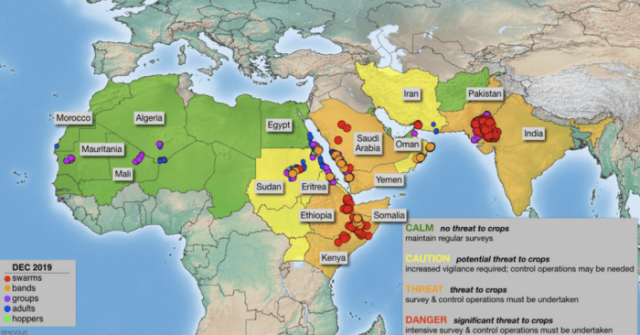 Die Schädlinge landeten in Djibouti, Eritrea, Oman und Jemen, auch Tansania und Uganda wurden von Schwärmen schon heimgesucht. Von allein wird die Plage nicht aufhören. Der FAO zufolge handelt es sich um die „schlimmste Lage seit 25 Jahren“.
