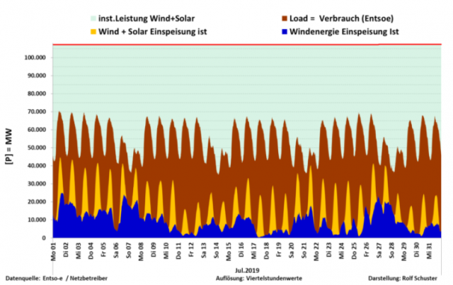 Wind- und Solarkraft, Strombedarf. Deutschland Juli 2018 Rolf Schuster www.eifelon.de
