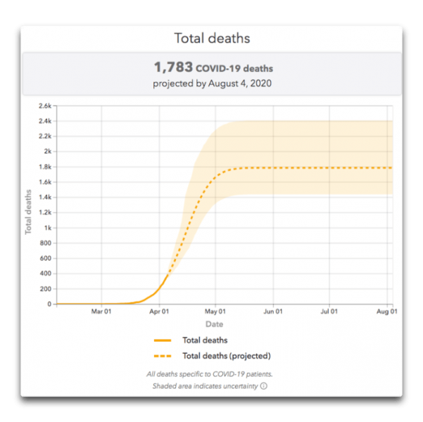 Nun, für Folgendes. Hier folgt die Projektion des IHME-Modells bzgl. Todesfälle durch das Coronavirus in der fünftgrößten Ökonomie der Welt: