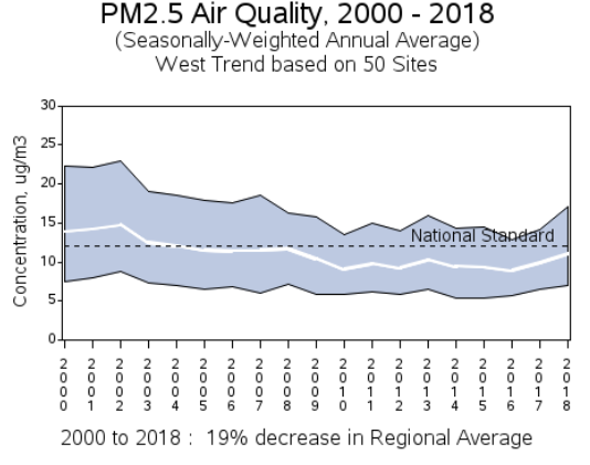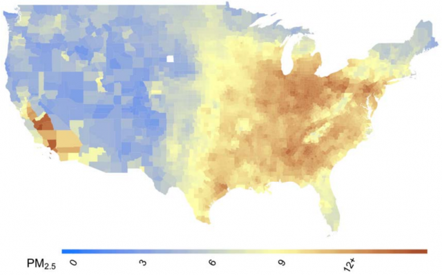 Dazu die in der Studie gezeigte Übersicht der Feinststaubverteilung in den USA: