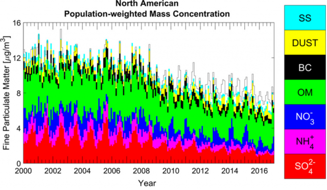 Bild 5 USA: Mittlerer Anteil von Feinstaub an den weiteren Luftverschmutzungs-Anteilen im Studien-Betrachtungszeitraum 2000 … 2016