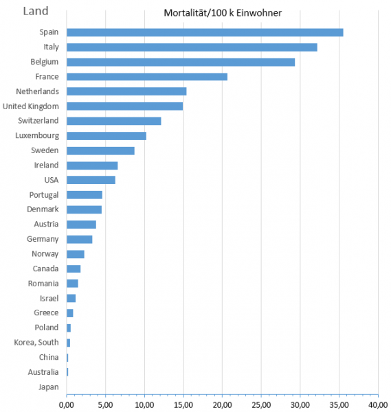 Bild 9 Corona-Mortalitätsraten international (Auszug). Datenquelle