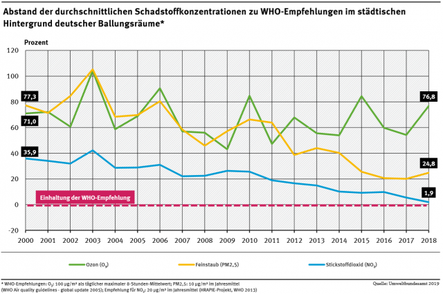 Das UBA erstellt auch Jahresberichte (leider nur für wenige Jahre und erst ab 2010 auf der Homepage zu finden). Darin sieht man die große Spanne an regionalen Unterschieden und kurzzeitigen Veränderungen: