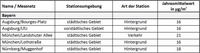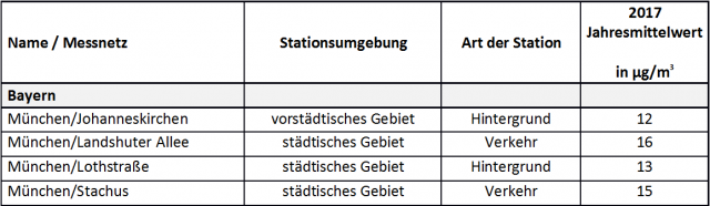 Im Bericht zum Jahr 2017 sind für Bayern 30 Messstationen gelistet und für ganz München nun vier: