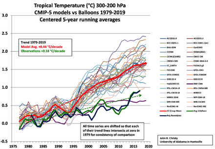 Hinsichtlich der Klimamodelle ist aber alles noch viel schlimmer. Die Klimamodelle übertreiben die Erwärmung durch Treibhausgase um einen Faktor 2 oder mehr: