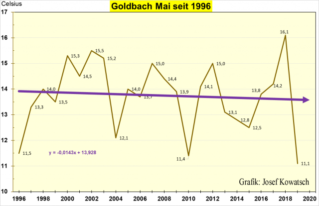 Zunächst die Grafik des Monates Mai in Goldbach seit 1996. (2020 fehlt noch)