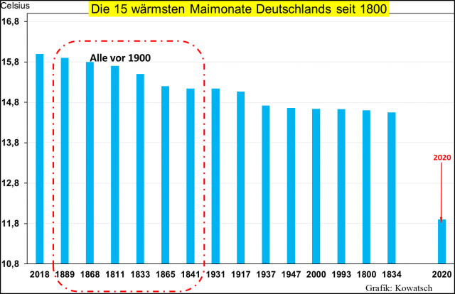 Man achte auf die Jahreszahlen der warmen Maimonate. Der Mai 2019 und 2020 wären ein Absteiger aus der ersten Liga.